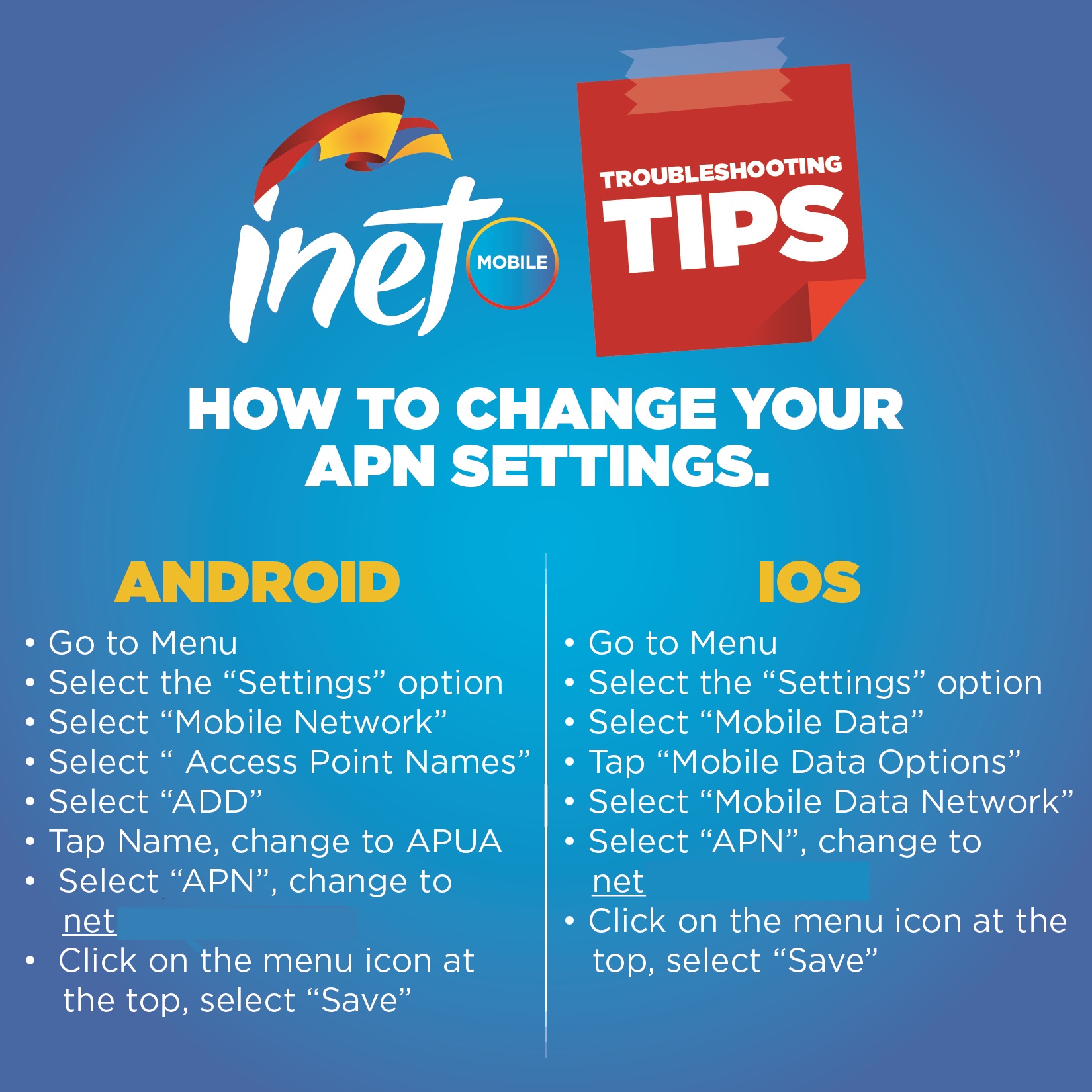 - APUA reserves the right to terminate the inet Mobile Talk, Talk and Data and/or Data Only Plans forthwith if in its sole opinion the package is being abused.