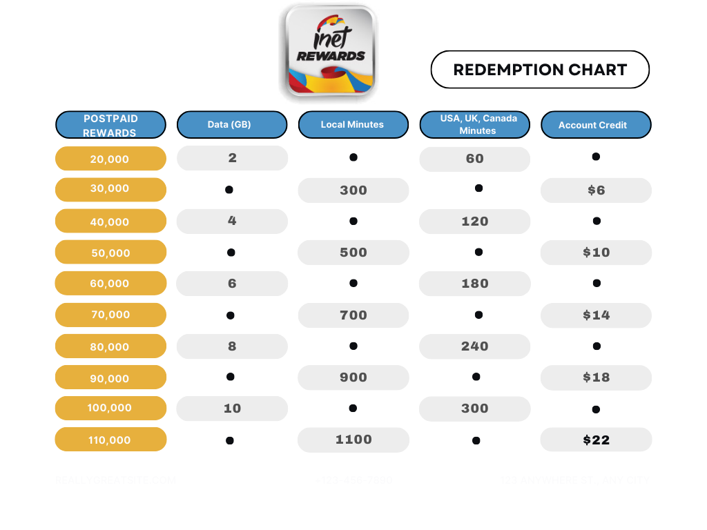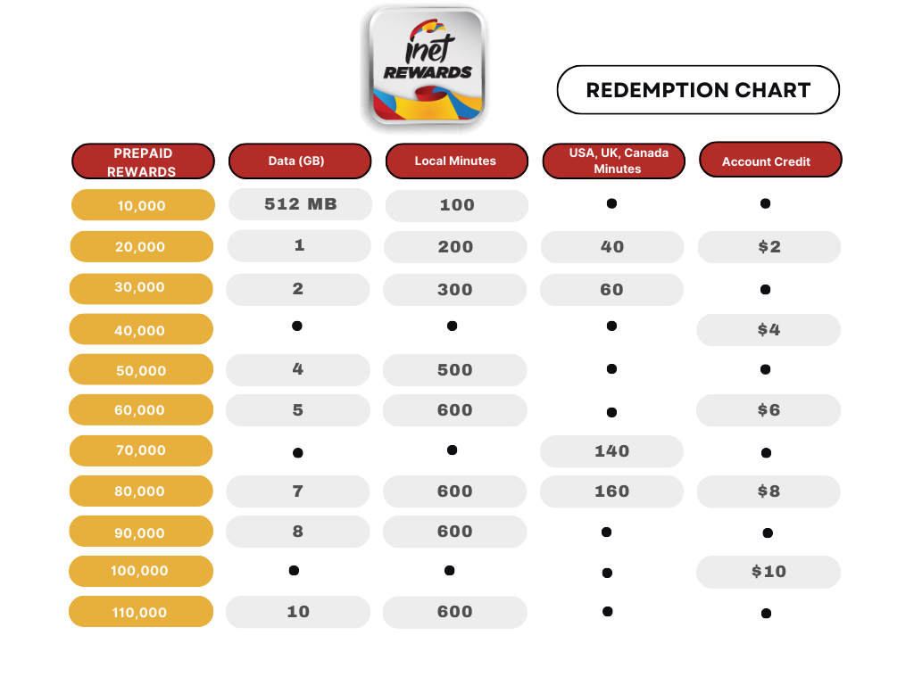 The program is open to all inet mobile customers. These terms constitute the entire agreement between you and APUA Telecoms with respect to the rewards program.